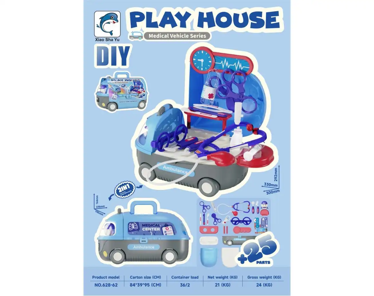 Игровой домик, медицинское оборудование, машина
