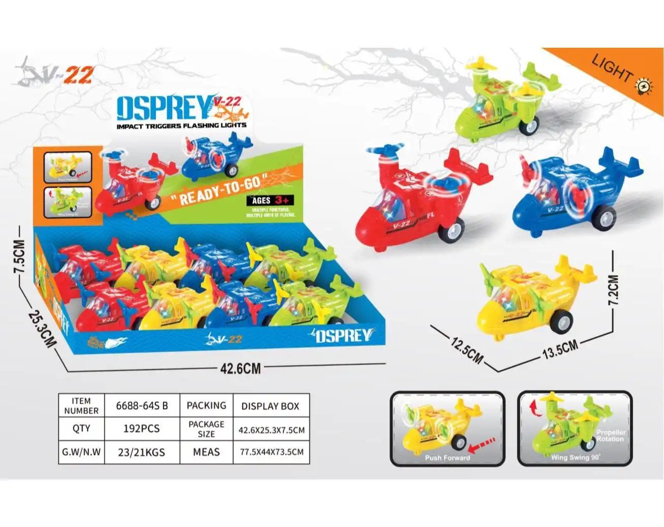 Самолет одноинерционный Osprey — с огнями (комплект из 8 шт.)