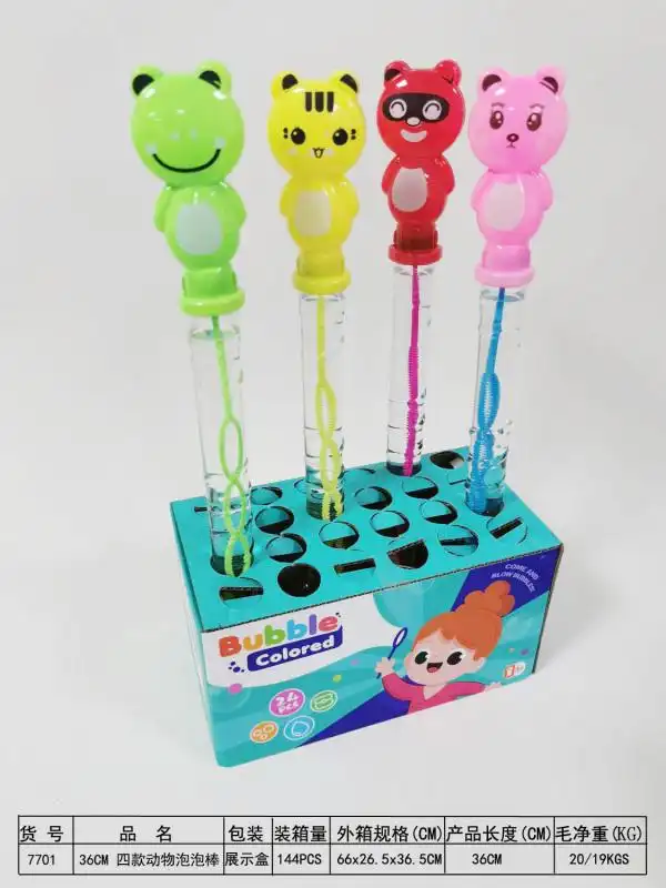 36 см, 4 палочки с пузырьками в виде животных (3 стиля, желтый/красный/зеленый/розовый), 24 палочки в коробке, 6 шт./кор.